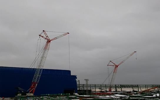 兩臺QUY260履帶吊完成廠房基礎(chǔ)建設(shè)最后吊裝工作,標志著哈銅項目圓滿竣工