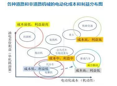 從圖上我們也發(fā)現(xiàn)一個(gè)過(guò)去沒有重視的地方,就是挖掘機(jī)。它其實(shí)應(yīng)該是電動(dòng)經(jīng)濟(jì)效益最大,而成本最低的機(jī)械!