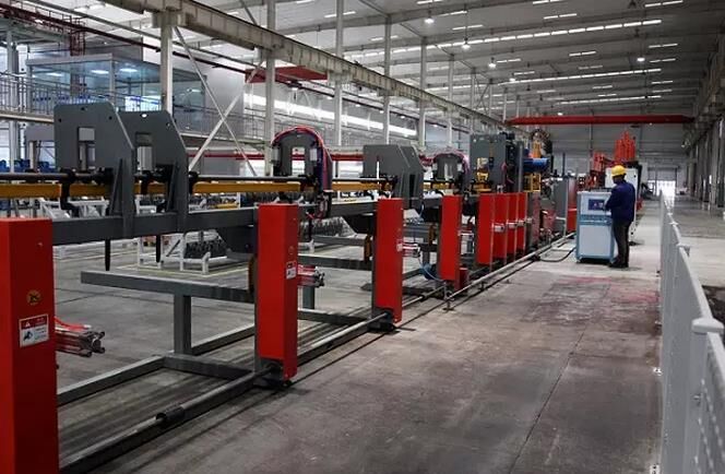 在項目建設(shè)初期,該公司引進國內(nèi)先進水平的PC生產(chǎn)流水線、全自動智能鋼筋加工線并開發(fā)智能混凝土攪拌站。PC流水線由自動清掃、噴油、劃線、邊模安裝、混凝土澆筑、趕平、預(yù)養(yǎng)護窯、抹光、養(yǎng)護、翻轉(zhuǎn)、沖洗等自動化設(shè)備組成,整個流水線各操作平臺由中央控室統(tǒng)一調(diào)度、控制,實現(xiàn)智能化、自動化生產(chǎn);鋼筋加工流水線是由全自動智能鋼筋桁架焊接機器人、全自動智能鋼筋彎箍機器人、全自動智能鋼筋柔性調(diào)直機器人、棒材鋼筋加工中心等鋼筋加工設(shè)備組成,可實現(xiàn)圖形輸入,數(shù)控加工;公司使用的混凝土攪拌站,是由徐工施維英有限公司設(shè)計、制造的符合公司生產(chǎn)實際需要的行業(yè)先進裝備,該設(shè)備擁有“一站式雙主機、立體料倉”的特點,可生產(chǎn)多品種混凝土,尤其具有同時生產(chǎn)兩種型號混凝土的功能。