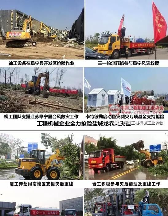 2015年底以來(lái),深圳發(fā)生大范圍滑坡災(zāi)害、江蘇鹽城市阜寧、射陽(yáng)等地出現(xiàn)強(qiáng)對(duì)流天氣、超強(qiáng)龍卷風(fēng)襲擊、閩南地區(qū)遭遇強(qiáng)臺(tái)風(fēng)“莫蘭蒂”……在這些災(zāi)害發(fā)生時(shí),廈工、晉工、中聯(lián)重科、林德叉車、徐工、三一帕爾菲格、柳工、卡特彼勒等工程機(jī)械企業(yè)快速反應(yīng),迅速集結(jié)救援設(shè)備,第一時(shí)間投入到搶險(xiǎn)救援中去。紛紛派出大型工程機(jī)械設(shè)備和援助隊(duì)伍加入到救援與災(zāi)后重建工作,并向?yàn)?zāi)區(qū)捐款捐物、捐贈(zèng)機(jī)械設(shè)備,展現(xiàn)了工程機(jī)械行業(yè)企業(yè)一如既往的強(qiáng)烈社會(huì)責(zé)任感和崇高的奉獻(xiàn)精神。