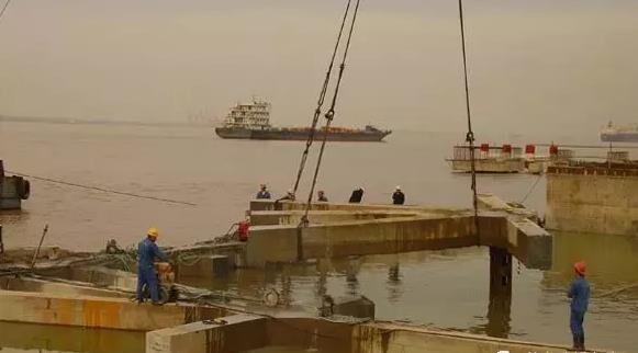傾注法澆筑水下混凝土,可用于岸邊水深不起過1.5m的情況。新澆的混凝土堆用夯擊或振動(dòng)等方法擠入已澆的混凝土體中,使只有前沿的混凝土坡面與水直接接觸?;炷恋奶涠纫?~10cm為宜。采用此種方法應(yīng)盡量縮短澆筑時(shí)間,在澆筑工作未完成之前,先澆的混凝土不得凝固。