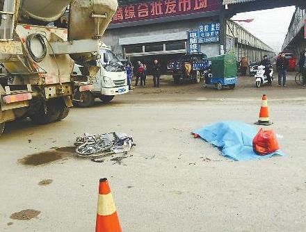 老人的遺體被藍(lán)色塑料布蓋著,一邊還有一個紅色塑料袋,里面放著老人剛從集市買的棉衣和棉褲,事發(fā)現(xiàn)場附近立著兩個警示栓,攪拌車停在遺體旁邊,司機(jī)在車內(nèi)。此時,在不遠(yuǎn)處集市上賣水果的,老人的小兒子已經(jīng)趕到現(xiàn)場,他情緒悲痛,正在配合民警做調(diào)查。