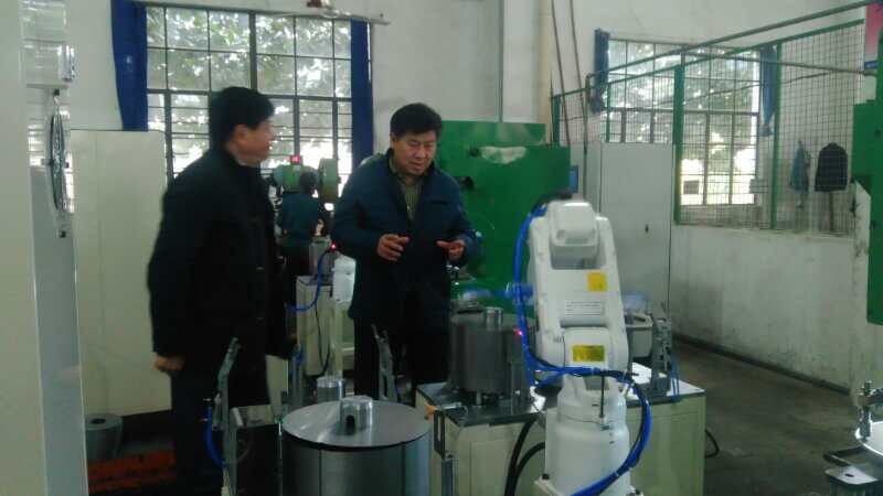 走出會議室,孫總和胡部長陪同符會長一行參觀公司生產(chǎn)車間,走到機加車間,符會長一下子就被“機器人操作完成錐形電機定子沖槽工作”工位所吸引,孫總講,這個工位以前都是人工操作,勞動強度很大,現(xiàn)在正在全力推進工位機器人操作,不久將會全部用機器人替代。