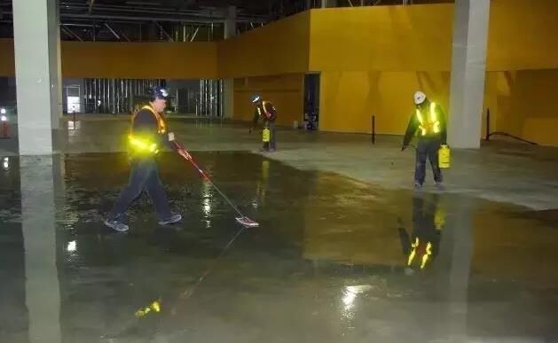 一旦混凝土表面的張合力被打開,混凝土經(jīng)過20到40多分鐘來(lái)吸收硬化劑。接著,可以對(duì)同一時(shí)間段進(jìn)行施工的整個(gè)區(qū)域做一個(gè)評(píng)估。如果大多數(shù)材料都已經(jīng)滲透到混凝土里,那就就將剩下的材料從濕潤(rùn)區(qū)域勻到干燥區(qū)域。在起粘稠區(qū)域處添加點(diǎn)水,把地面刷均勻,然后讓它自然干。如果材料已經(jīng)全部滲透進(jìn)去,表面沒有任何殘留物,那就不需要再清洗地面了。