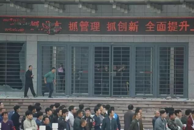 3月8日凌晨,袖纏紅護身符布條、手戴白手套,600多人拿著棍棒聚集在濟南104國道山東山水水泥集團有限公司總部門口,強行沖進大門,對辦公樓的幾個門進行“砸打”,還從廠區(qū)強行把裝載機開上辦公樓門口回廊對辦公樓大門進行蠻擊。此時,集團辦公樓里山水高管和員工只有20余人,多人在防衛(wèi)中被外邊投擲的石塊砸中受重傷,躺在醫(yī)院。