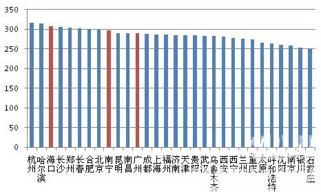 圖1:2016年全國(guó)各地C30商混市場(chǎng)均價(jià)比較(元/方)