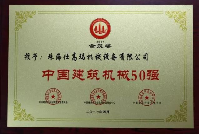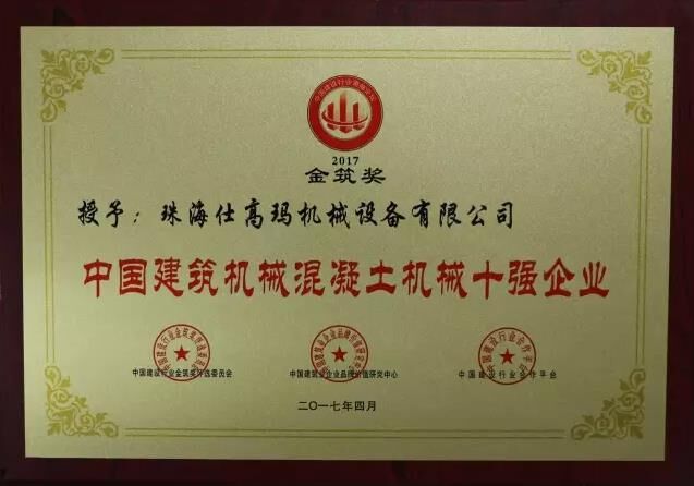 珠海仕高瑪榮獲“中國(guó)建筑機(jī)械50強(qiáng)”、“中國(guó)建筑機(jī)械混凝土機(jī)械十強(qiáng)企業(yè)”稱號(hào)!