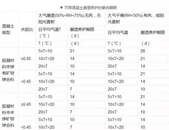 3.養(yǎng)護持續(xù)時間以規(guī)范中所規(guī)定的時間為最短時間,豎向混凝土結構適當增加養(yǎng)護時間,結合混凝土的組成及配合比、環(huán)境溫度與濕度、養(yǎng)護方法、風力、風速等諸多因素綜合考慮。