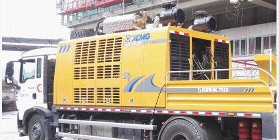 徐工超高壓車載泵在現(xiàn)場(chǎng)持續(xù)施工對(duì)建筑體260米以上施工平臺(tái)進(jìn)行混凝土澆筑