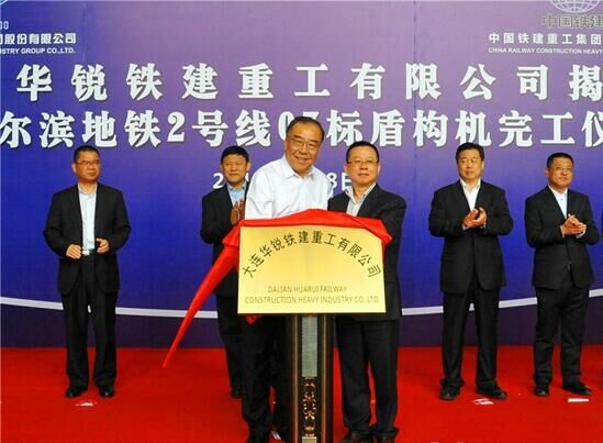 5月8日,中國制造業(yè)兩個“巨頭”的雙手緊緊握在了一起,他們分別是鐵建重工董事長劉飛香、大連重工董事長叢紅。兩位董事長共同出席在大連重工·起重集團泉水研制基地舉行的“大連華銳鐵建重工有限公司揭牌暨哈爾濱地鐵2號線7標盾構機完工儀式”,并高興地一起為“大連華銳鐵建重工有限公司”揭牌。