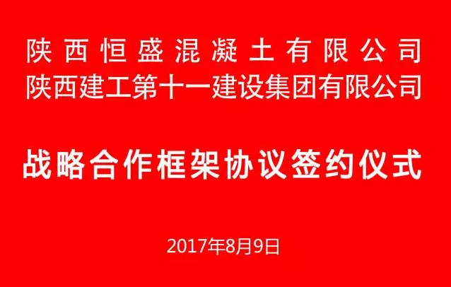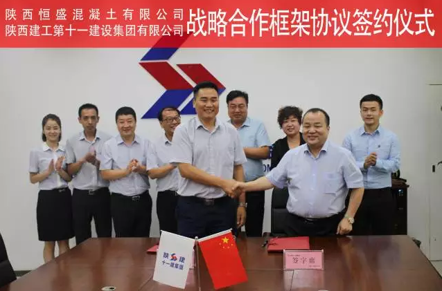 8月9日,陜西恒盛混凝土有限公司與陜西建工第十一建設集團有限公司戰(zhàn)略合作框架協(xié)議簽約儀式在陜建十一建集團西安總部隆重舉行。陜西恒盛集團董事長王武鎖,陜西建工第十一建設集團有限公司總經(jīng)理馮宏斌出席儀式代表雙方簽約。