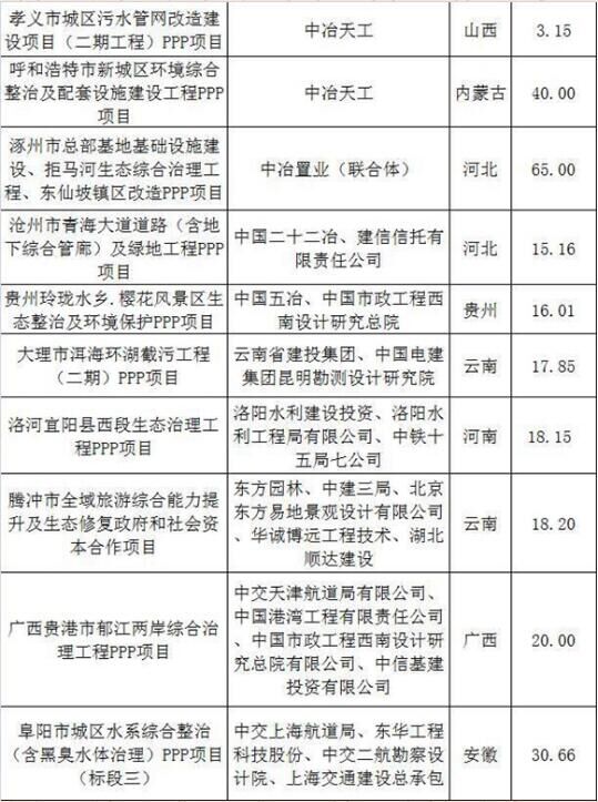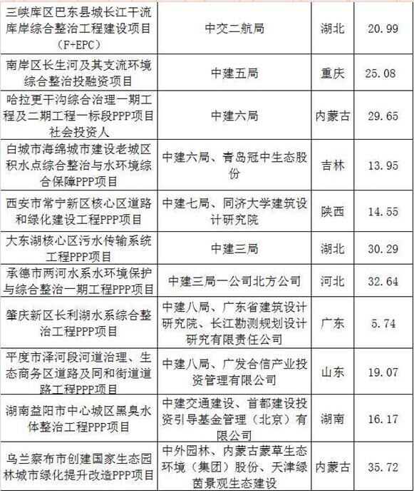 2017上半年建筑企業(yè)承攬環(huán)保工程PPP項目清單