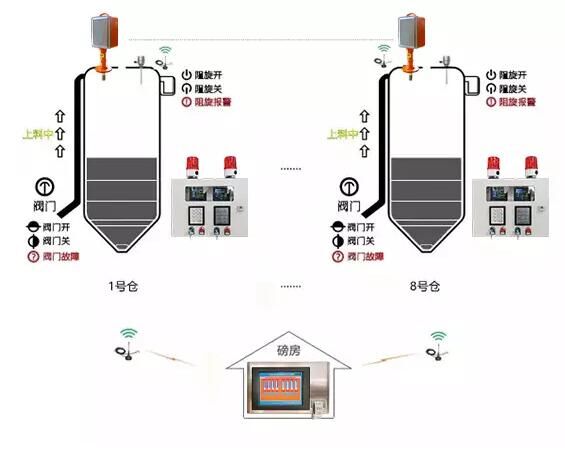 終端集成了料位報(bào)警功能,實(shí)現(xiàn)了一對一的料位報(bào)警;