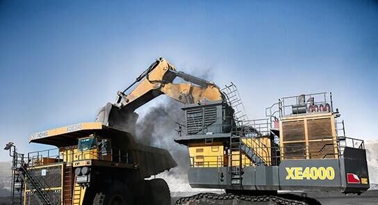 徐工國內首臺400噸級液壓挖掘機和徐工巨型礦用自卸車在山西平朔煤礦施工