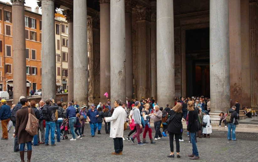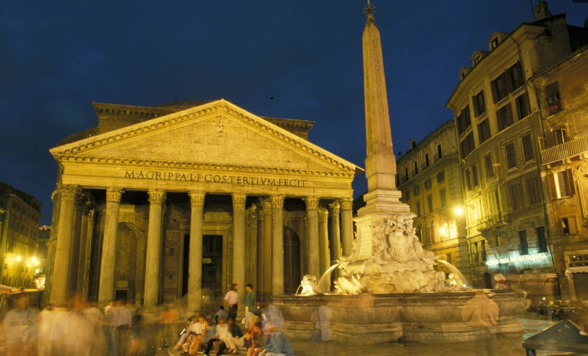 在羅馬市中心,有一個(gè)中央豎立著高大的尖頂方碑的噴水池,方碑基座雕有古羅馬神話場景,這一噴水池所在地就是羅馬萬神殿的前庭。它是至今完整保存的唯一一座羅馬帝國時(shí)期建筑