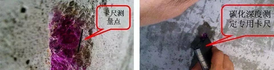 碳化會增大混凝土表面硬度,所以回彈判定其強度時需要檢測碳化深度(一般混凝土碳化深度可用碳化深度測量儀,碳化深度尺等進行測定。回彈值測量完畢后,應選擇不少于構件的30%測區(qū)數(shù)在有代表性的位置上測量碳化深度值。)進行修正。
