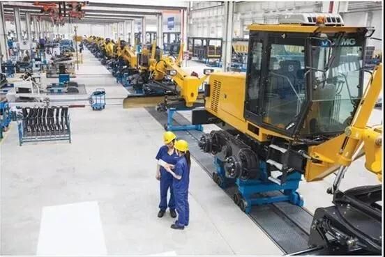 2014 年上半年,徐工打造出了被譽為行業(yè)“綠色夢工廠”的最先進的平地機生產(chǎn)基地。整條平地機流水線通過 SAP 系統(tǒng)、MES 系統(tǒng)和精益生產(chǎn)的高效鏈接,集自動化、集成化、智能化三位一體,達(dá)到了“國際先進、行業(yè)領(lǐng)先”水平,年產(chǎn)可達(dá) 3000 臺。2017 年,徐工平地機智能制造車間獲評“江蘇省智能制造車間”。