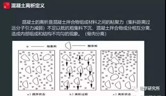 混凝土離析啊是混凝土是混凝土拌合物組成材料之間的一個黏聚力,(集料距離過遠分子引力減弱)不足以抵抗粗集料下沉,混凝土拌合物成分互相分離,造成內部組成結構不均勻的現象。