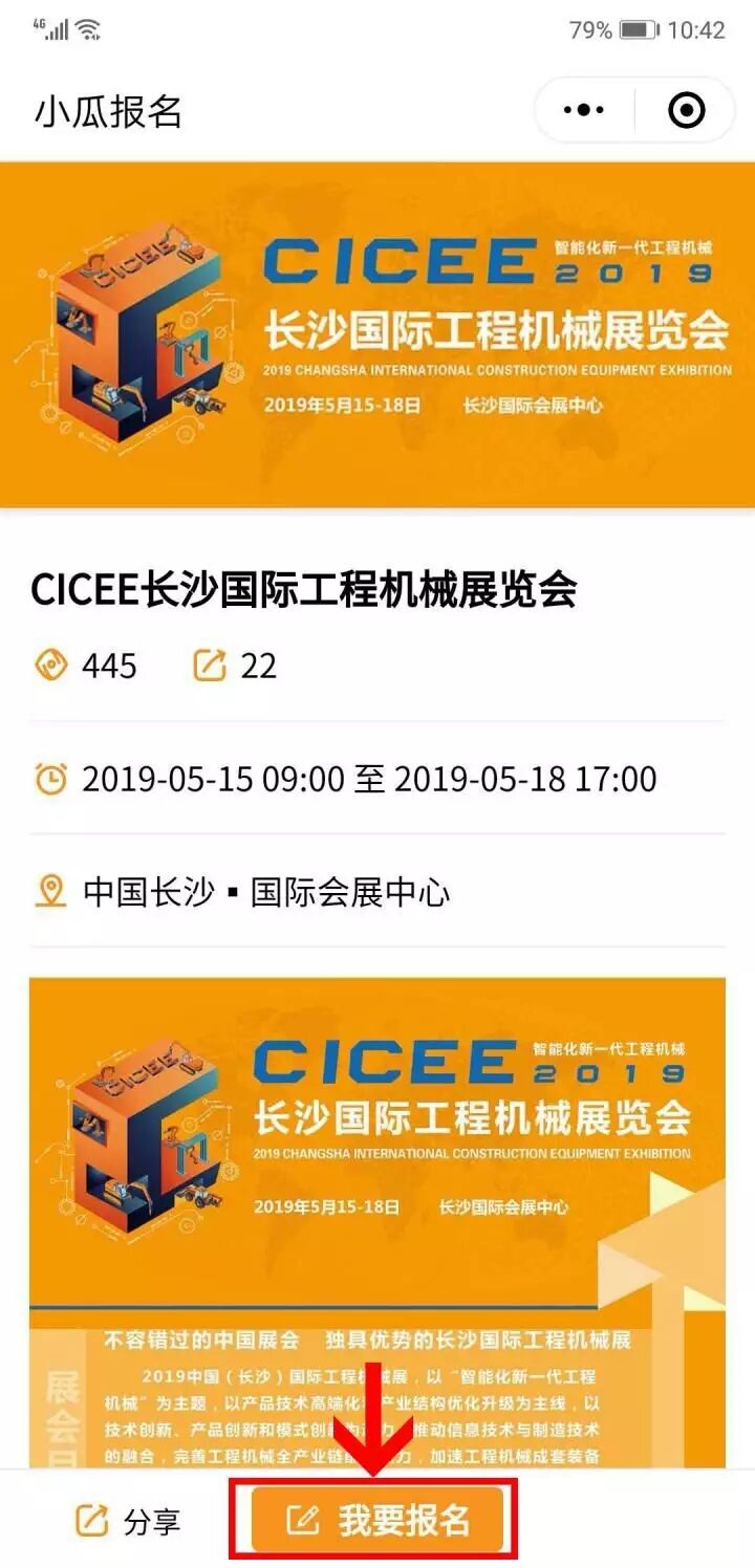 完成上述步驟,您將尊享CICEE2019長沙工程機(jī)械展覽會這場工程機(jī)械饕餮盛宴。