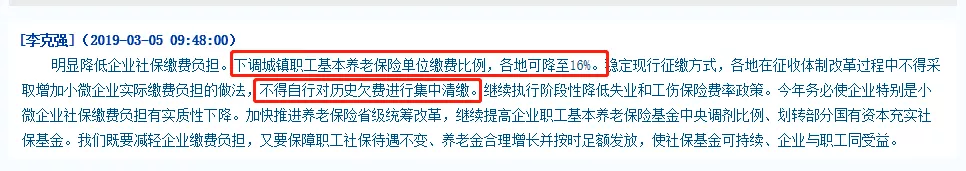 2、下調(diào)城鎮(zhèn)職工基本養(yǎng)老保險單位繳費比例,各地可降至16%!不得自行對歷史欠費進行集中清繳!