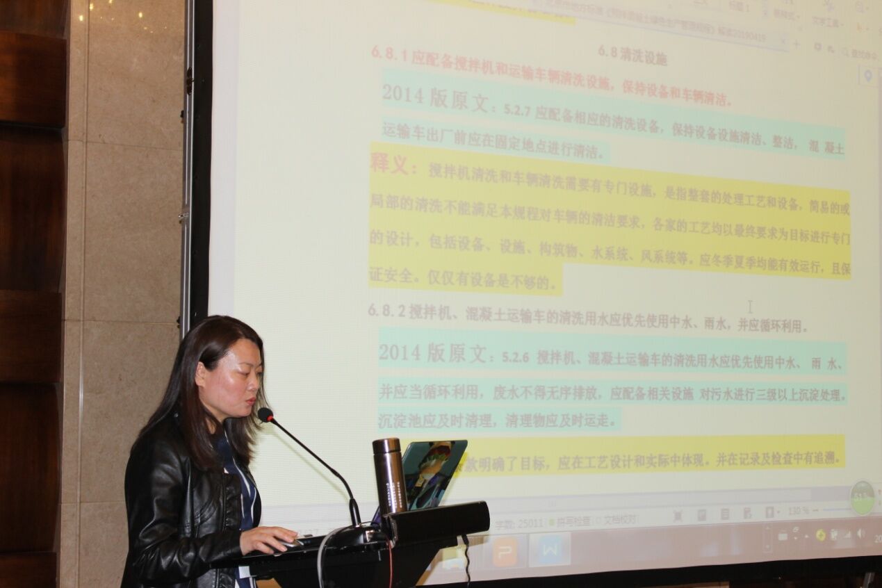 北京市砼協(xié)會秘書長齊文麗女士對《預(yù)拌混凝土綠色生產(chǎn)管理規(guī)程》及北京市“治超治限”政策解讀作了詳盡的講解。尤其是切合本次攪拌運輸車研討的主題,重點闡述了攪拌車在政策當(dāng)中超限問題、攪拌車清潔問題,并對全封閉工作作出解讀。政策規(guī)定是詳盡和嚴(yán)謹(jǐn)?shù)?,處罰力度也是非常之大,從首都北京的政策解讀中讓與會者感受到了行業(yè)發(fā)展的方向和設(shè)備生產(chǎn)單位制造改善的方向;
