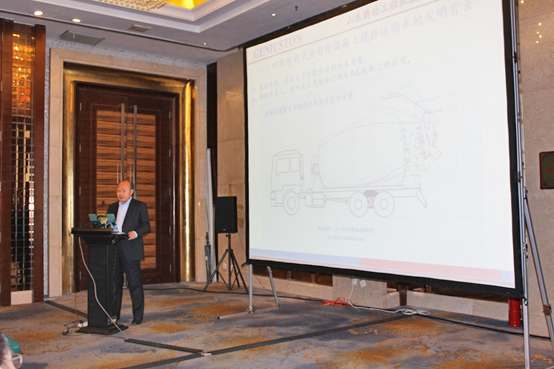 意大利普曼普(PMP)董事長Luigino POZZO先生作了《全球攪拌運輸車的發(fā)展趨勢》的主題報告,Luigino POZZO先生詳細(xì)闡述了歐洲攪拌車在以下四方面的技術(shù)發(fā)展趨勢。一是安全性(Safety),二是對環(huán)境的影響(Environmental impact),三是攪拌(混凝土)質(zhì)量(Quality of mixing),四是操作員舒適性(Ergonomics/Operatorcomfort),并提出歐洲大攪拌運輸車(超過10立方)是意大利和北歐(荷蘭)市場的主流型號,并已證實可以提高混凝土運輸?shù)男?,更是用詳?xì)具體的對比數(shù)據(jù)闡述了這一結(jié)論。Luigino POZZO先生對國外攪拌運輸車的發(fā)展趨勢的闡述給這次研討會提供了寶貴的意見。