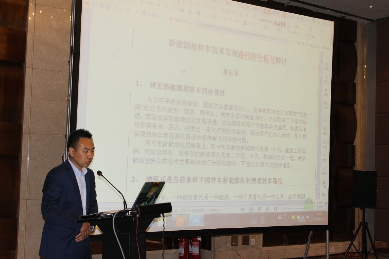 安徽星馬專用汽車有限公司總經(jīng)理助理裴志軍先生從國內(nèi)外攪拌車的發(fā)展現(xiàn)狀出發(fā),作了“增程式是當(dāng)前條件下攪拌車新能源化的理想技術(shù)路徑”和“增程式在攪拌車上應(yīng)用前景展望”的《新能源攪拌車技術(shù)發(fā)展路徑的分析與探討》報告。