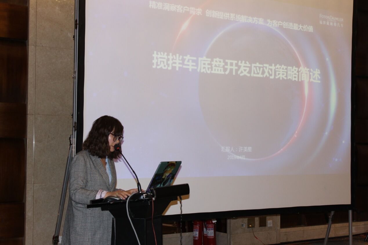北汽福田汽車股份有限公司技術(shù)部部長許美星女士作了《適應(yīng)攪拌車新法規(guī)之底盤設(shè)計》的主題報告,結(jié)合攪拌車的發(fā)展趨勢介紹了重卡發(fā)展的總體趨勢以及政策法規(guī)制定進(jìn)程,有很多參考的價值和意義。同時許部長還介紹了認(rèn)證體系中的主要應(yīng)對項以及BFDA產(chǎn)品開發(fā)應(yīng)對策略,讓與會者對于配套的底盤及政策有了更多了解。