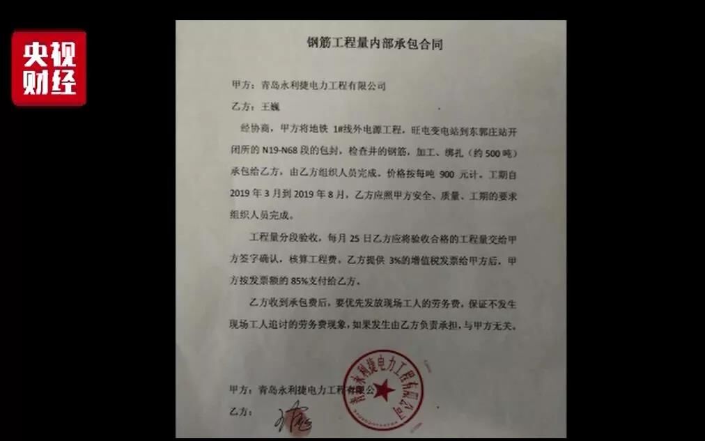 從青島地鐵到爆料人,一個總額1.4億元的地鐵配套項目工程,歷經(jīng)永利捷、順源達等多家公司分包、以及多位“中間人”轉(zhuǎn)手。其中環(huán)節(jié)到底有沒有涉嫌違法?央視記者走訪了青島地鐵集團和葛洲壩電力公司。