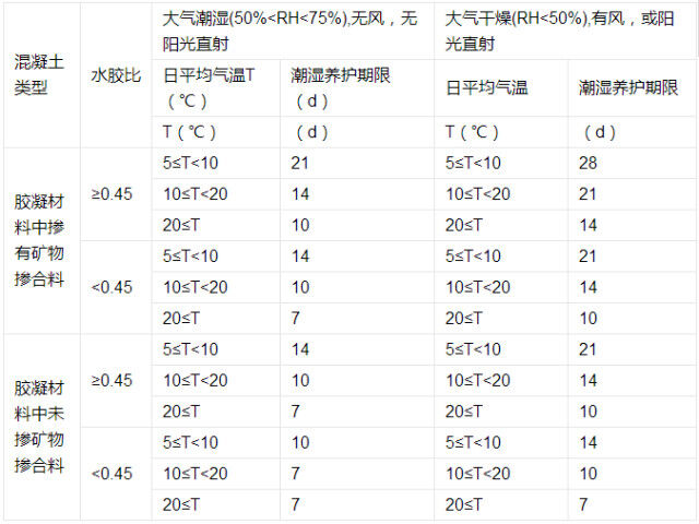 不同混凝土潮濕養(yǎng)護(hù)的最低期限