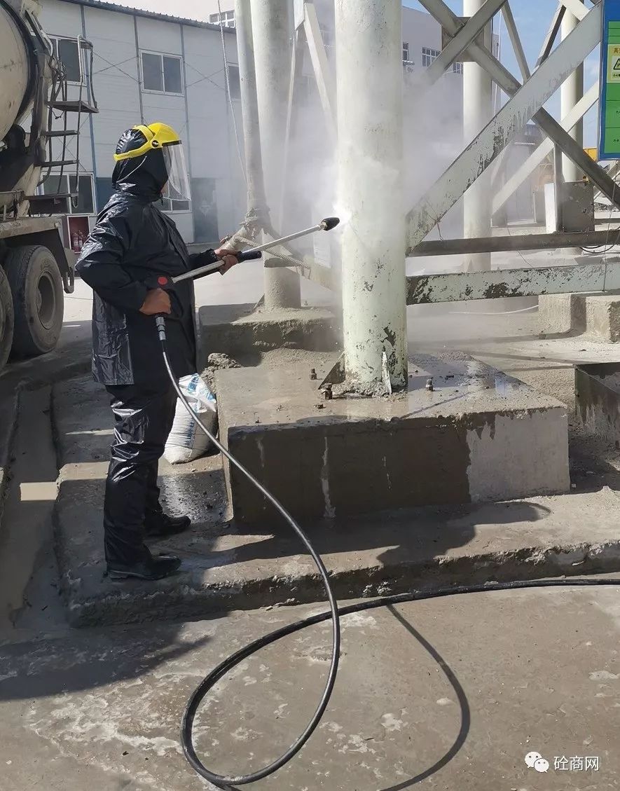 在楊技術員給站上工作人員進行初步講解指導后,首先對兩年沒有清理過的水泥倉支腿下方累積的混凝土進行了處理。那么,效果究竟怎么樣呢?具體視頻關注“砼商網”公眾號,回復“高壓清洗機”即可獲得技術員正準備打攪拌機主樓容易噴濺混凝土的地方時該攪拌站站長說道,這可得有兩年沒清理過的混凝土結塊,十幾公分厚呀!你們這高壓清洗機能打掉嗎?這是混凝土?。∵@么長時間了,還這么厚,打不下去怎么辦?正在小編心里打鼓的時候,楊技術員說道,沒問題,放心吧!