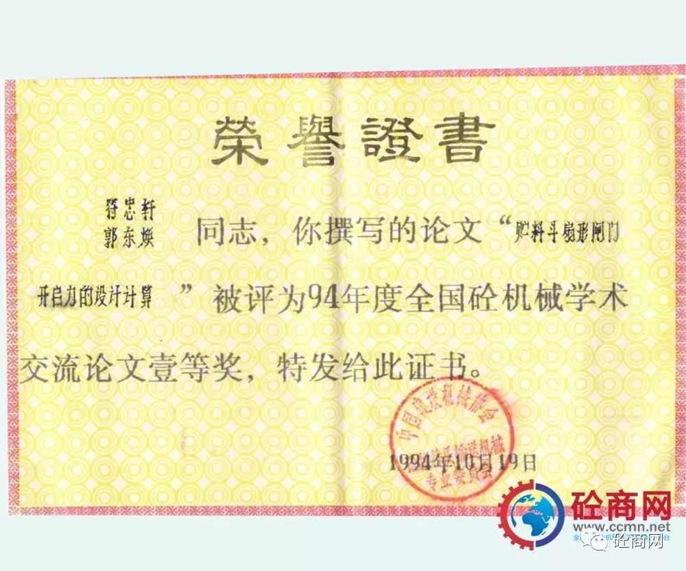 行業(yè)引領(lǐng)發(fā)展,研發(fā)人員積極性高。本人作為科研人員先后發(fā)表了《儲(chǔ)料斗扇形閘門開啟力的設(shè)計(jì)計(jì)算》被評(píng)為1994年度全國砼機(jī)械學(xué)術(shù)交流論文一等獎(jiǎng),本文引入“水力學(xué)半徑”的概念,較為詳盡的介紹了目前在混凝土攪拌站、配料站上大量采用的扇形閘門料斗的開啟力計(jì)算,為配料機(jī)構(gòu)的設(shè)計(jì)選型提供了理論依據(jù);發(fā)表的《談裝載機(jī)上料形式混凝土配料(攪拌站)的發(fā)展》被評(píng)為1992年度全國砼機(jī)械學(xué)術(shù)交流會(huì)優(yōu)秀論文獎(jiǎng),本文針對(duì)當(dāng)時(shí)混凝土攪拌站上料型式較多:懸臂拉鏟、鏈斗機(jī)及裝載機(jī)上料型式等,分析了國內(nèi)發(fā)展的實(shí)際,提出了裝載機(jī)上料形式為未來發(fā)展方向;1997年發(fā)表在《建設(shè)機(jī)械技術(shù)與管理》雜志第五期的《混凝土泵攪拌葉片的合理布置》,以全球量大面廣的S閥為例,分析了幾種葉片布局形式對(duì)混凝土泵吸料性的影響,設(shè)計(jì)了一種正泵送料、反泵扒料合理的攪拌葉片布局形式。