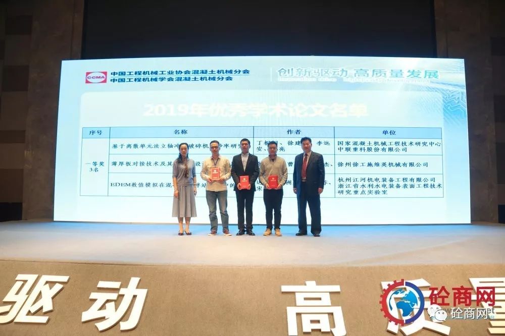 2019年的論文征集評(píng)選結(jié)果已經(jīng)揭曉,共收到參評(píng)論文26篇,其中會(huì)長單位中聯(lián)重科、國家混凝土機(jī)械技術(shù)研究中心《基于離散單元法立軸沖擊破碎機(jī)成砂率研究》等三篇論文獲得一等獎(jiǎng),副會(huì)長單位廊坊中建機(jī)械有限公司《混凝土攪拌站主機(jī)上蓋沾料現(xiàn)象分析與處理方法》共5篇論文獲得二等獎(jiǎng)、中聯(lián)重科、國家混凝土機(jī)械技術(shù)研究中心《基于云邊一體的泵車油耗分析研究》等8篇論文獲得三等獎(jiǎng),其余10篇均獲優(yōu)秀論文獎(jiǎng)。在此我提議:讓我們以熱烈掌聲向中聯(lián)重科、徐工施維英、廊坊中建機(jī)械有限公司三家優(yōu)秀組織單位和論文獲獎(jiǎng)人員表示最熱烈的祝賀和最誠摯的感謝——感謝大家為中國混凝土機(jī)械行業(yè)的技術(shù)進(jìn)步所做出的貢獻(xiàn)。