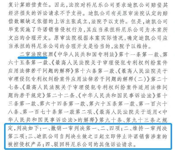 高院認為,迪凱公司“從事了被訴侵權(quán)產(chǎn)品的制造、銷售和許諾銷售行為”。