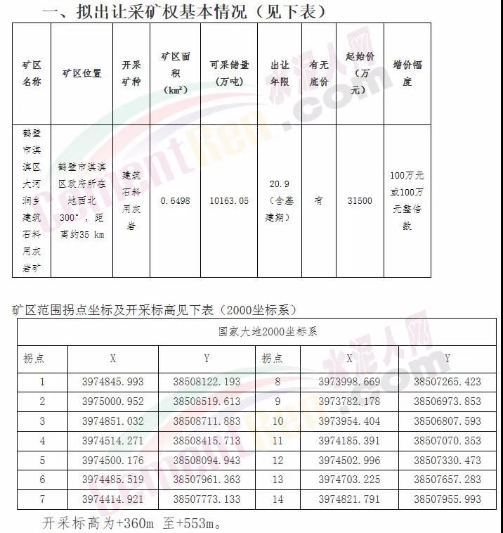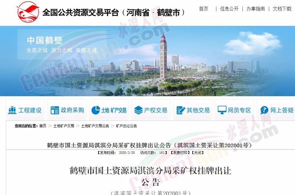 近日,多家建材企業(yè)向水泥人網反映,3月20日,鶴壁市國土資源局淇濱分局在全國公共資源交易平臺發(fā)布了鶴壁市國土資源局淇濱分局采礦權掛牌出讓公告(淇濱國土資采讓第202001號),面向社會公開掛牌方式出讓“鶴壁市淇濱區(qū)大河澗鄉(xiāng)建筑石料用灰?guī)r礦”采礦權。存在“地方保護”的不合理性競爭。