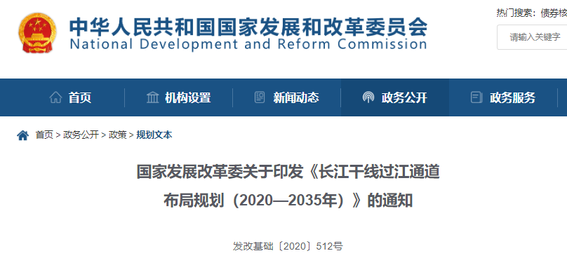 ??《長江干線過江通道布局規(guī)劃(2020—2035年)》(以下簡稱《規(guī)劃》)業(yè)經(jīng)國務院批準,現(xiàn)印發(fā)給你們,請按照執(zhí)行,并就有關事項通知如下: