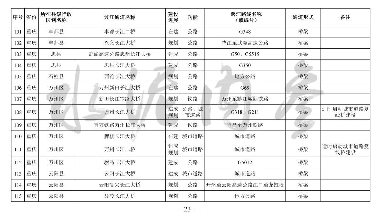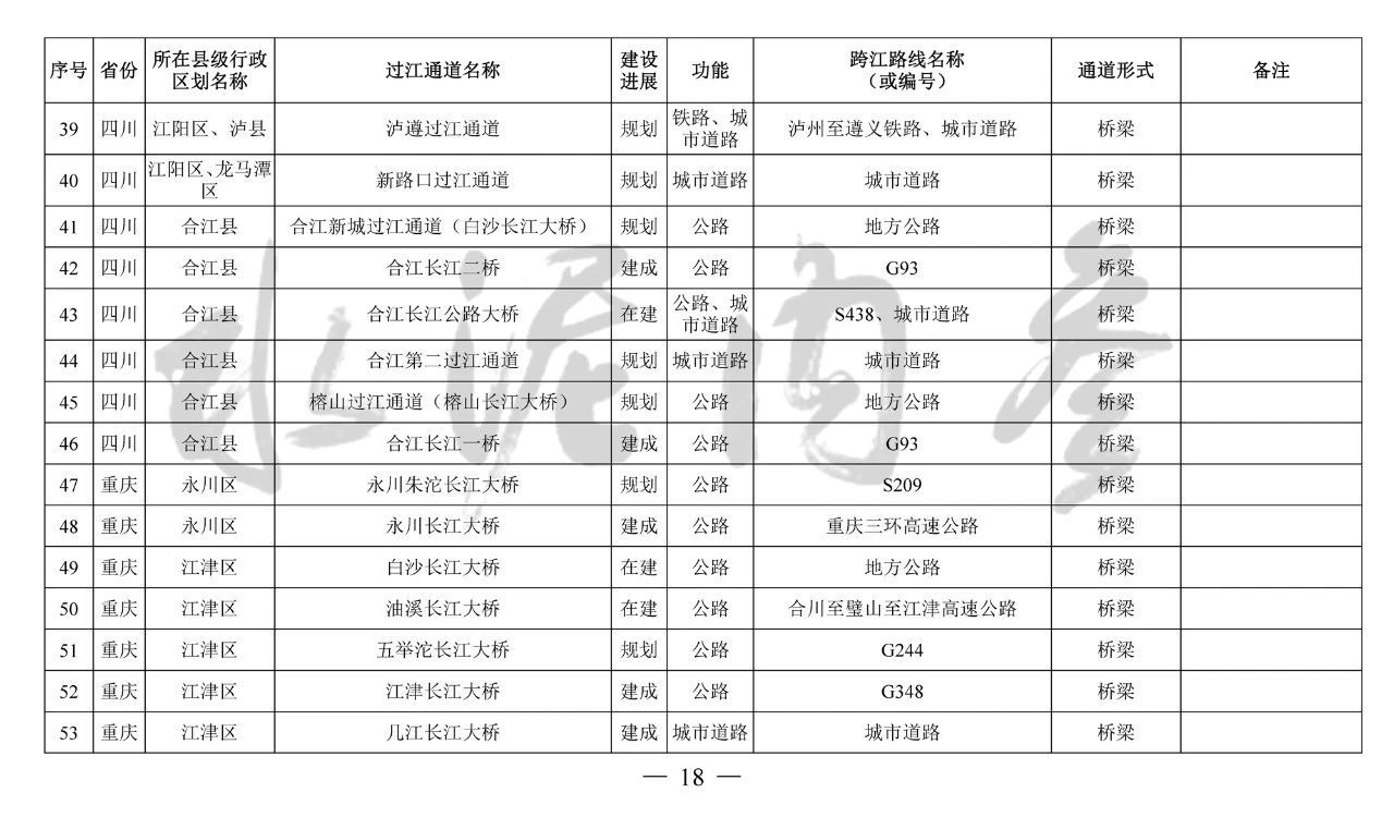 ??四、本《規(guī)劃》主要布局橫跨長江干線主要航道、具有交通功能的過江通道項目,對于連接洲島與沿岸、洲島之間的通道項目和不具備交通功能的跨江、沿江建筑物,由省級發(fā)展改革委統(tǒng)籌布局編制相關規(guī)劃報送我委銜接后組織實施。