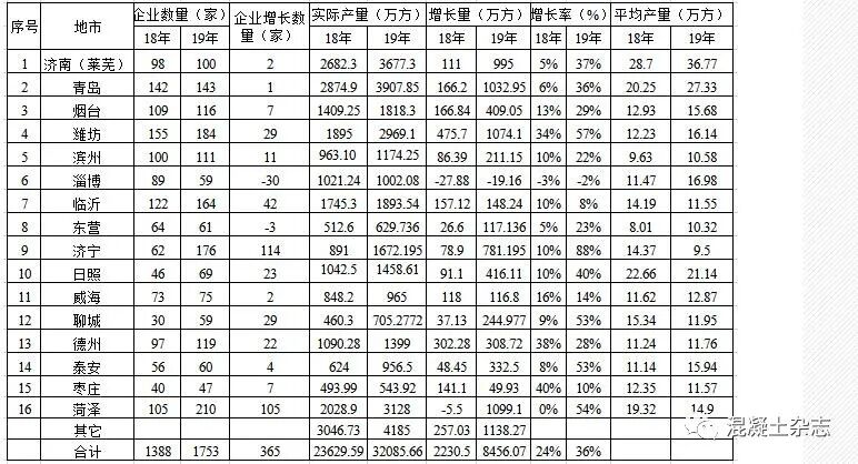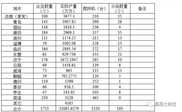 山東省2019年預拌混凝土生產(chǎn)企業(yè)及產(chǎn)量統(tǒng)計