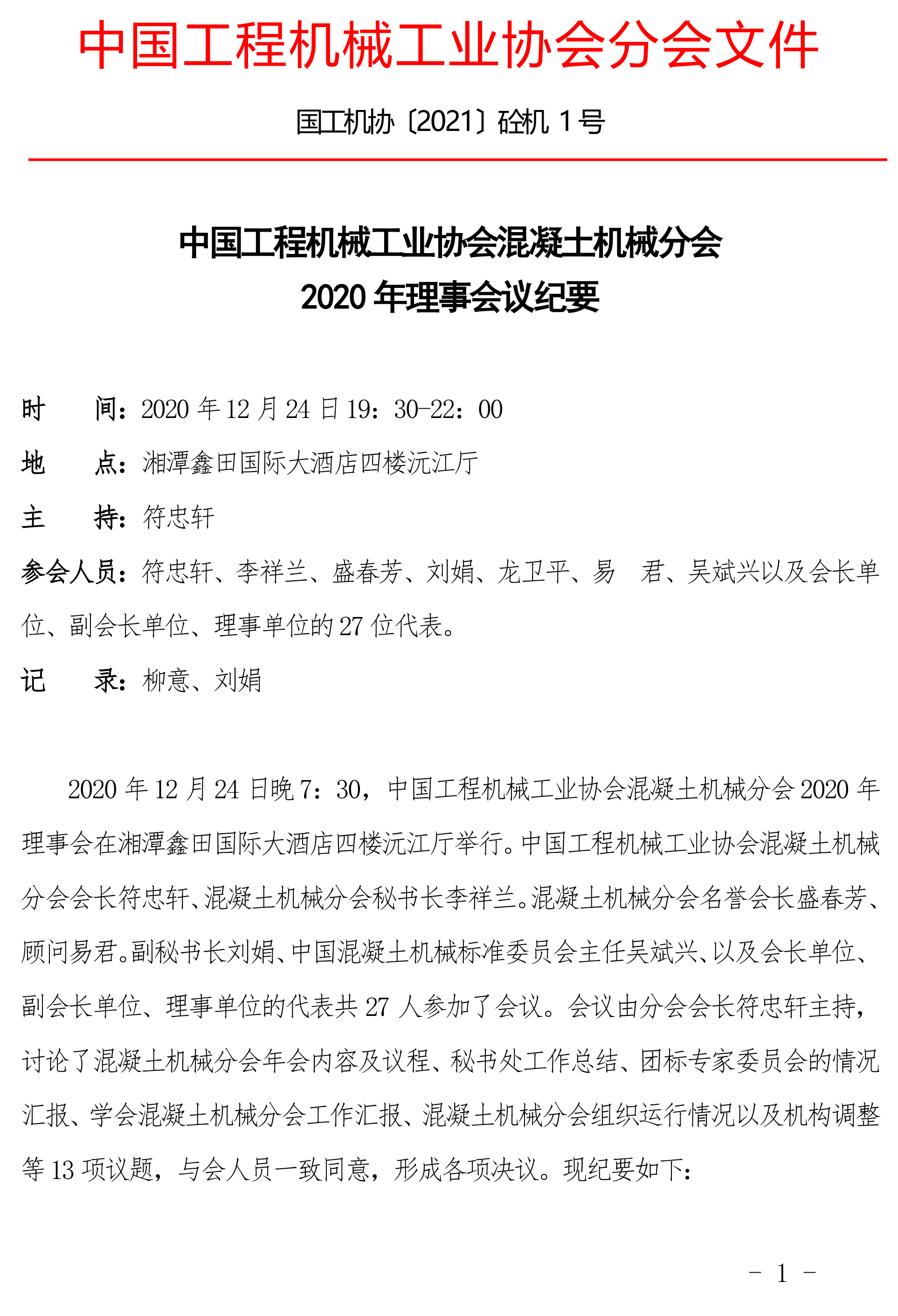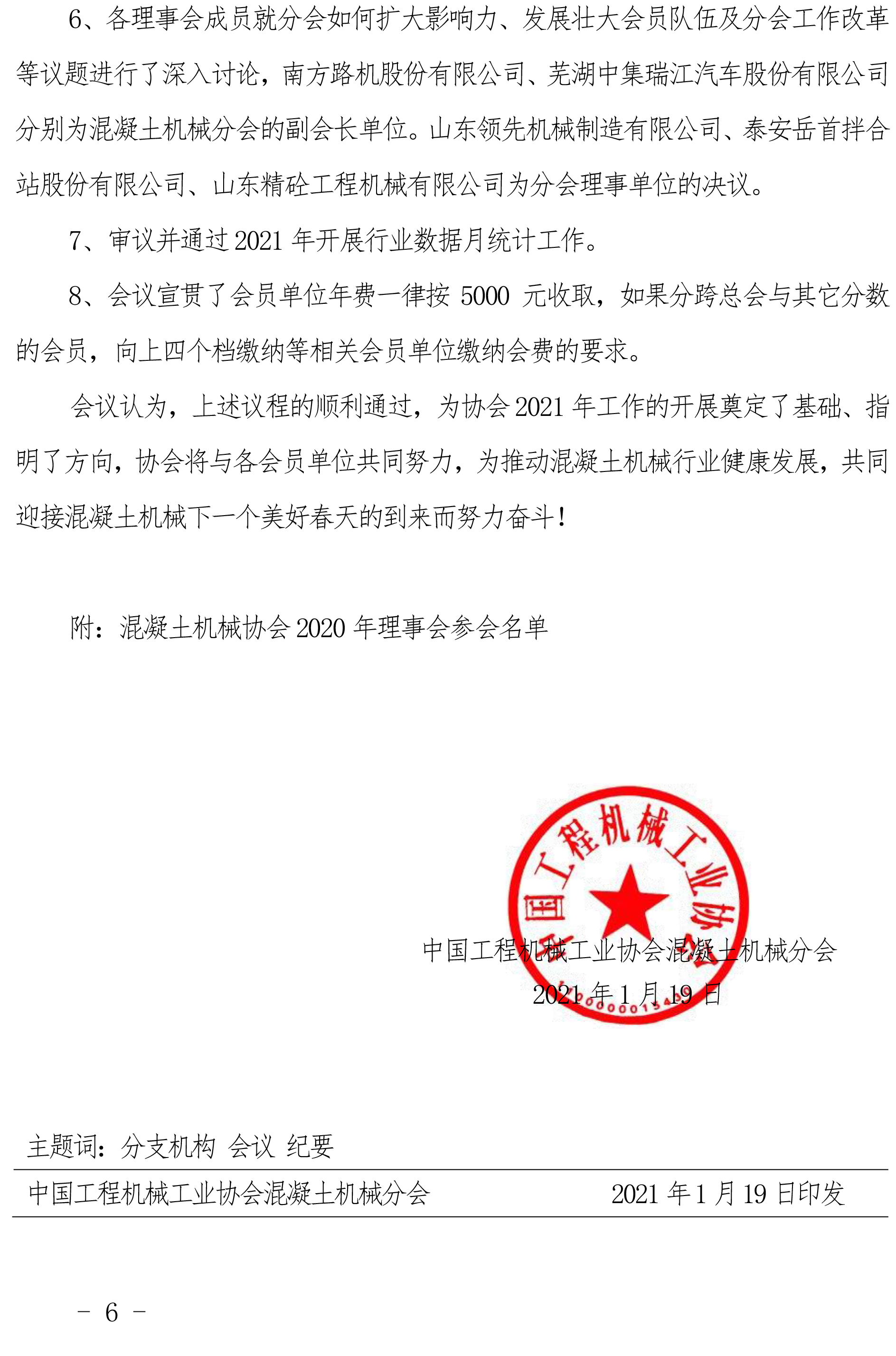 中國工程機械工業(yè)協會混凝土機械分會 2020 年理事會議紀要