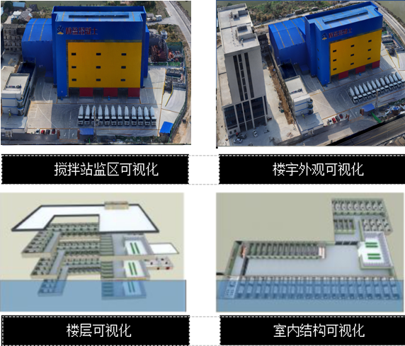 通過3D可視化技術(shù)手段,實(shí)現(xiàn)攪拌站全場(chǎng)景3D仿真可視瀏覽。場(chǎng)景構(gòu)建包括攪拌站監(jiān)區(qū)場(chǎng)景、樓宇外觀、樓層、室內(nèi)結(jié)構(gòu)、特定設(shè)備內(nèi)部等各層級(jí)場(chǎng)景的可視化。