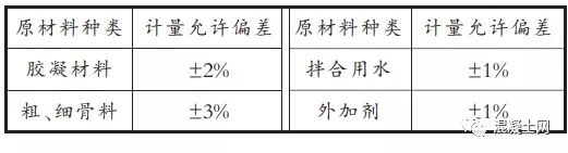 表1 每盤混凝土原材料計量偏差允許偏差