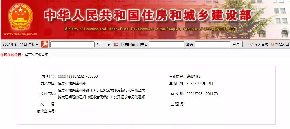 住房和城鄉(xiāng)建設(shè)部就《關(guān)于在實(shí)施城市更新行動(dòng)中防止大拆大建問題的通知(征求意見稿)》