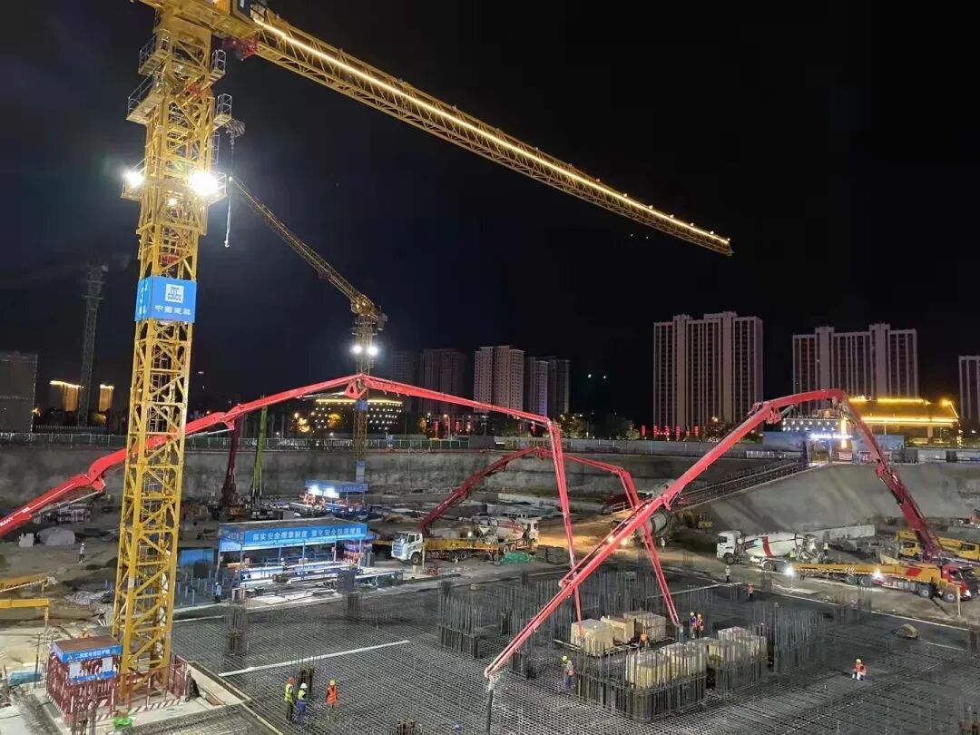 此次施工創(chuàng)造了天水市單次筏板混凝土澆筑量最大及澆筑厚度最大等多項記錄,標志著中深財富中心超高層主體施工已全面展開。1號樓預(yù)計將在10月份實現(xiàn)超8000m3澆筑。