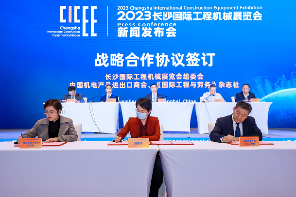 從湘江到黃浦江,從星城走向“魔都”,2023第三屆長沙國際工程機械展覽會(CICEE)全球首場新聞發(fā)布會在上海隆重召開。來自新華社、人民日報、湖南日報、湖南衛(wèi)視、紅網、慧聰工程機械網等國內64家和國際36家媒體代表、展會主承辦單位負責人、11家國家級戰(zhàn)略合作商協(xié)會代表和30多家全球工程機械50強參展企業(yè)和配套件參展企業(yè)代表共同見證了這一盛會。