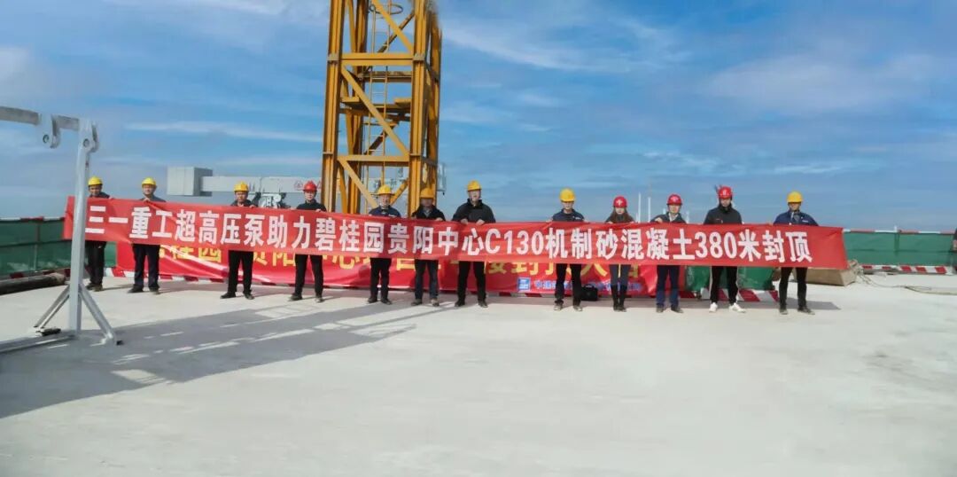 12月7日,碧桂園貴陽中心工程貴州機(jī)制山砂C130超高泵送(380米)高性能混凝土澆筑項(xiàng)目順利啟動(dòng),貴陽中心也終于迎來了封頂大吉的好日子。