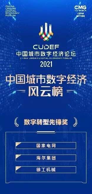 論壇上,《中國城市數(shù)字經(jīng)濟(jì)風(fēng)云榜》榮耀發(fā)布。榜單包括“城市數(shù)字經(jīng)濟(jì)競爭力綜合排名”,同時多項重磅獎項發(fā)布,“數(shù)字賦能先鋒獎”“數(shù)字轉(zhuǎn)型先鋒獎”“數(shù)字應(yīng)用方案獎”。徐工機(jī)械與國家電網(wǎng)、海爾集團(tuán)同時榮獲“數(shù)字轉(zhuǎn)型先鋒獎”,成為唯一入選的工程機(jī)械制造企業(yè)。