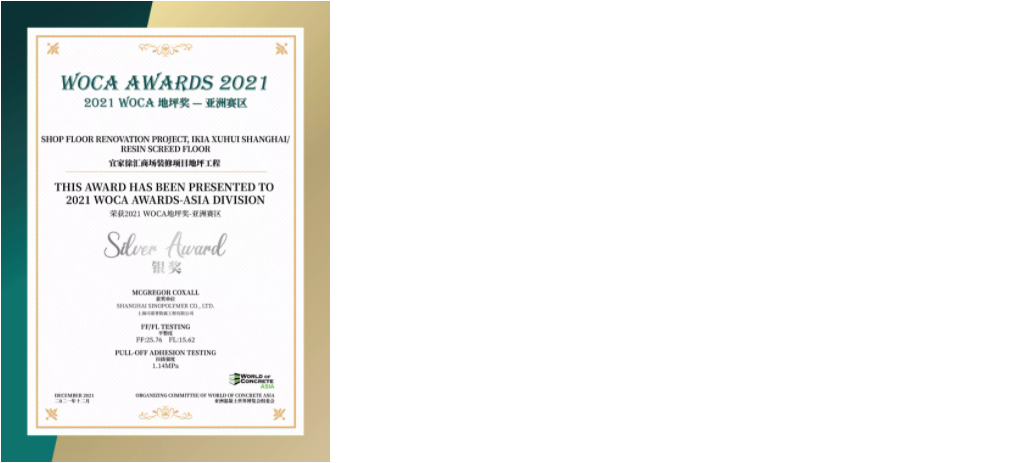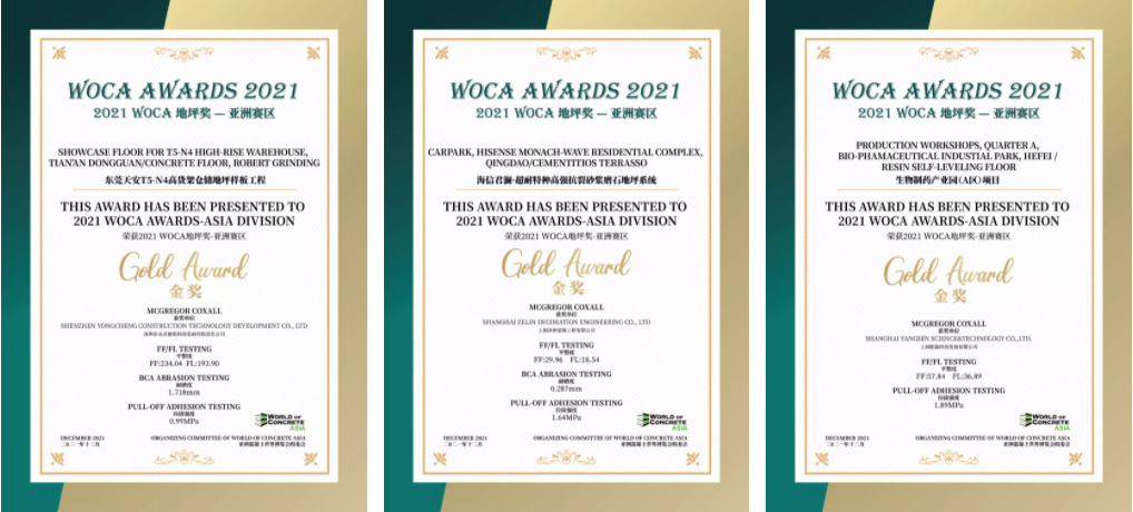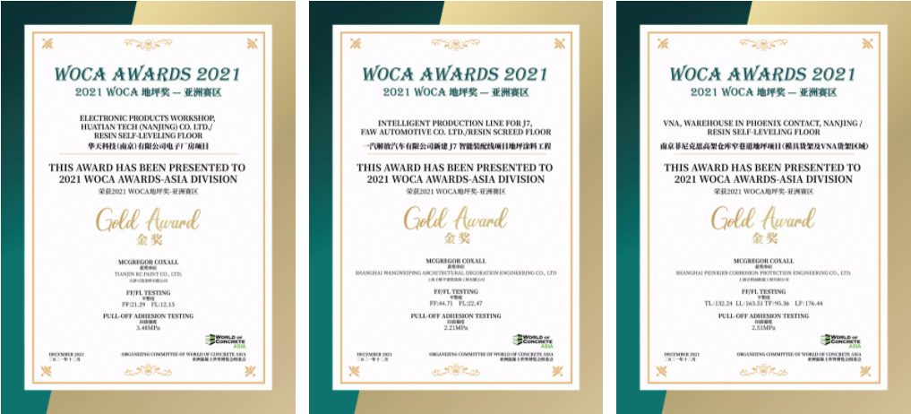 經(jīng)過對多個項目進行地坪檢測,三大類中13個優(yōu)秀項目獲得了2021 WOCA 地坪獎(WOCA AWARDS)-亞洲賽區(qū)的榮譽。