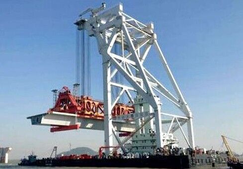 在大橋建設(shè)現(xiàn)場(chǎng),記者看到,遼闊的海面,海天輝映的地方,三一紅顯得格外耀眼,不遠(yuǎn)處的三一設(shè)備正“辛勤工作”。