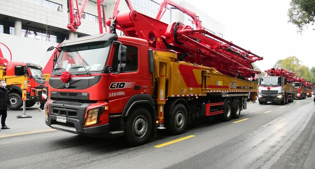 長(zhǎng)沙廠區(qū)主干道上,66臺(tái)“世界泵王”整裝待發(fā),接受現(xiàn)場(chǎng)各位領(lǐng)導(dǎo)和來(lái)賓的檢閱。本次發(fā)貨的產(chǎn)品涵蓋37米、43米、56米等多款明星產(chǎn)品,更有S系列泵車的大力加持,大部分為國(guó)六新品。