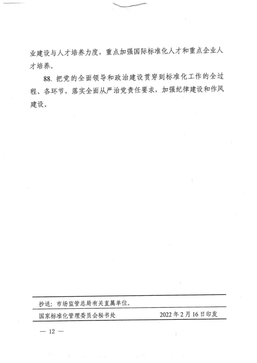 國家標(biāo)準(zhǔn)化管理委員會關(guān)于印發(fā)《2022年全國標(biāo)準(zhǔn)化工作要點》的通知